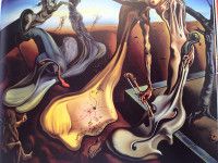 A very large, extraordinary painting that takes one’s breath away is titled, “Gala Contemplating the Mediterranean Sea which at Twenty Meters Becomes the Portrait of Abraham Lincoln (Homage to Rothko).” At first glance, this painting is an abstract work focusing on Gala’s back, the sun in the sky with boxes of colors in the background. Approached from different angles, one sees a large image of Abraham Lincoln looking out from the painting. Bearing Dali’s trademark wit, it is brilliant and kitschy at the same time.