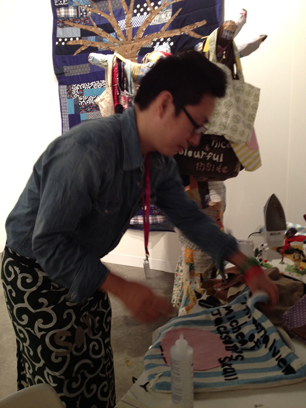 All the galleries brought their “A” game to Art Basel Miami Beach 2012. There were museum-quality works to be purchased for millions of dollars by well-known artists, but also at the Irish gallery, Mother’s Tankstation, artist Atsushi Kaga brought his mother to sew the fabric bags and quilts that he designed for $50.00 a bag. The works were so charming and whimsical that the gallery couldn’t keep them in stock and his mother couldn’t sew fast enough to keep up with the demand!