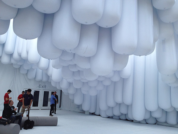 Visitors were raving about Design Miami, where international galleries were exhibiting museum-quality furniture, lighting, and art objects. Just walking into this show was a visual delight. I was transfixed by the white balloon-like structures hanging from the ceiling before entering the facility.