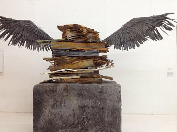 This year, the first floor space was redesigned to accommodate monumental installations. The second floor was transformed into a sculpture area with a raised floor and the third floor had many of the same installations that explored themes of fragility and mortality.